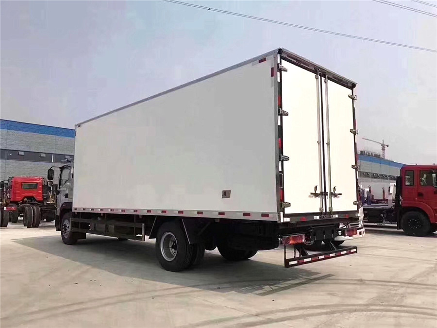 9.00R20钢丝胎、动力转向、空调、定速巡航、离合助力、断气刹、ABS,轴距:5600mm.国五冷藏车厢体采用内外玻璃钢,中间聚氨酯发泡真空负压一次成型。冷藏车厢体内制冷温度可以根据用户需求选择适合自已非独立机组或独立机组,制冷温度可以在驾驶室内随意调节。国五冷藏车厢体尺寸:7550/7250×2300×2300mm,整车尺寸:9995×2520×3830mm。