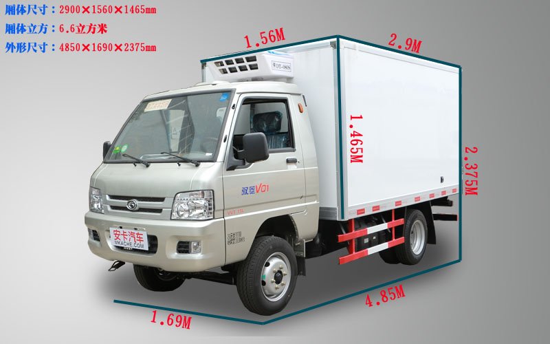 福田驭菱2.9米后双轮冷藏车厢体尺寸
