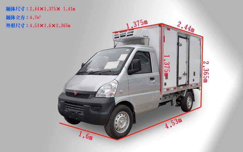 五菱宏光2.4米小型冷藏车厢体尺寸