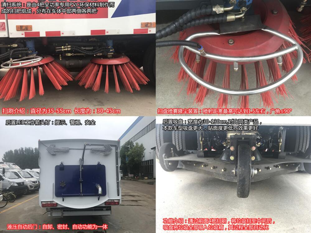 带扫盘4把,莱恩副发动机;三洋马达;施耐德控件开关;海普瑞斯电磁阀组;免维护自分离式离合器;免维护风机;不锈钢水箱;不锈钢垃圾箱;尾部LED箭头灯;手动泵应急系统。