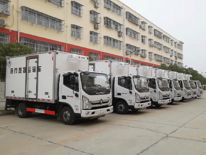 :货厢尺寸见表格,内不锈钢外玻璃钢、厢体用5cm厚聚氨脂发泡制作而成、配零下5度机组、紫外线灭菌、后尾部双层开门,其它均按厂标执行组织生产;