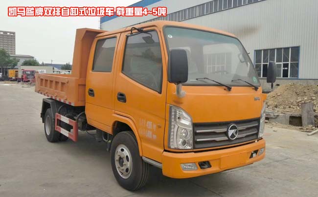 凯马蓝牌双排自卸式垃圾车,锡柴88马力(带DPF),新款五十铃级双排车身,5档变速箱,1063前后桥,7.00R16轮胎,汽刹,方向助力,ABS,原厂空调。
