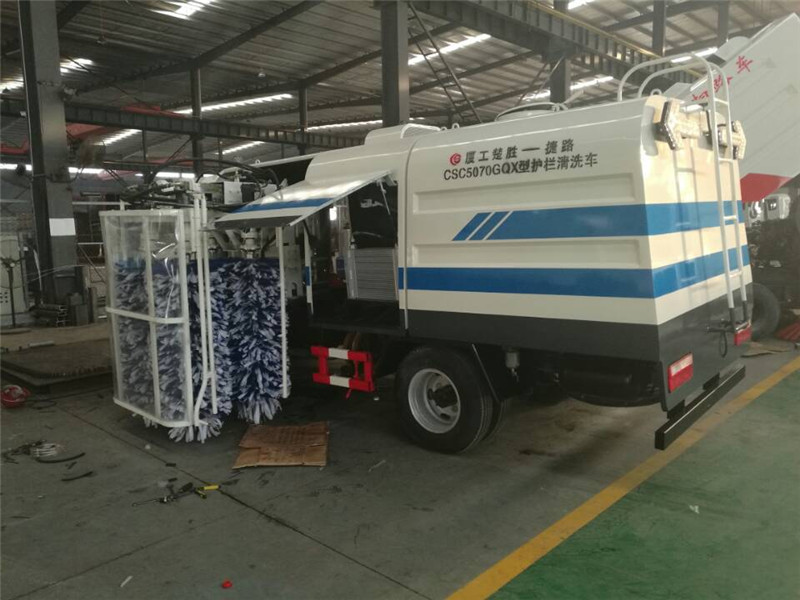 主要用于护栏清洗和城市道路隔离护栏清洗。也可用于清洗工业排液管道、壁面等、市道路隔离护栏、道路两侧墙体的刷洗。护栏清洗车可加装洒水和高压清洗装置。还可根据用户需要加装