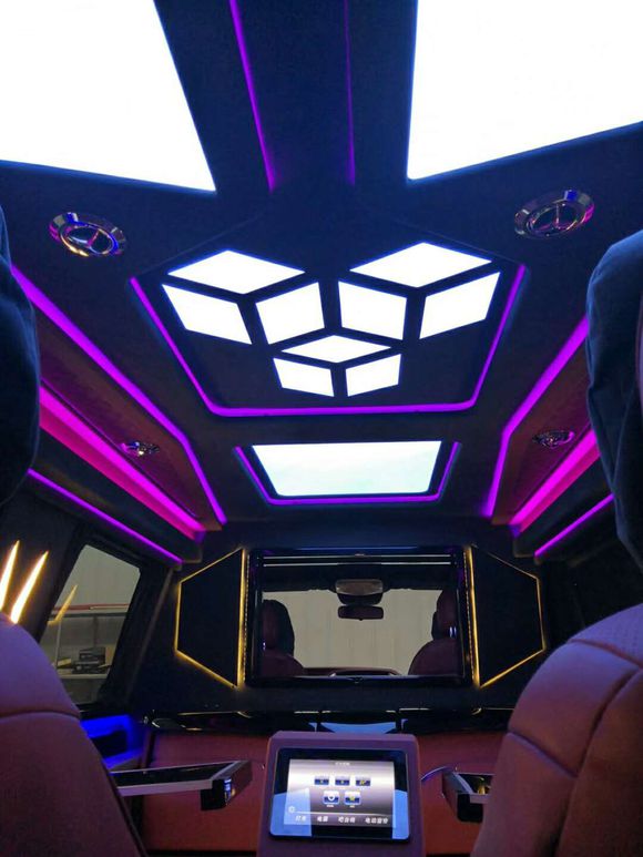 前排真皮包覆方向盘,中央扶手替换为车载大容量冷藏箱,随时为后排贵宾供应新鲜,前后排是有分隔屏隔断,墙上配备了大曲屏电视和哈曼卡顿音响。豪华的内饰舒心舒适,缓解工作上的疲劳,娱乐配套设施又给您放松之余来些娱乐。这些享受就是俊浩改装的斯宾特所带给你。稳坐车内即可让您安静地大隐于市,闲逸潇洒于繁华都市之间。