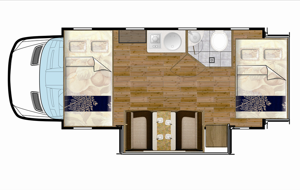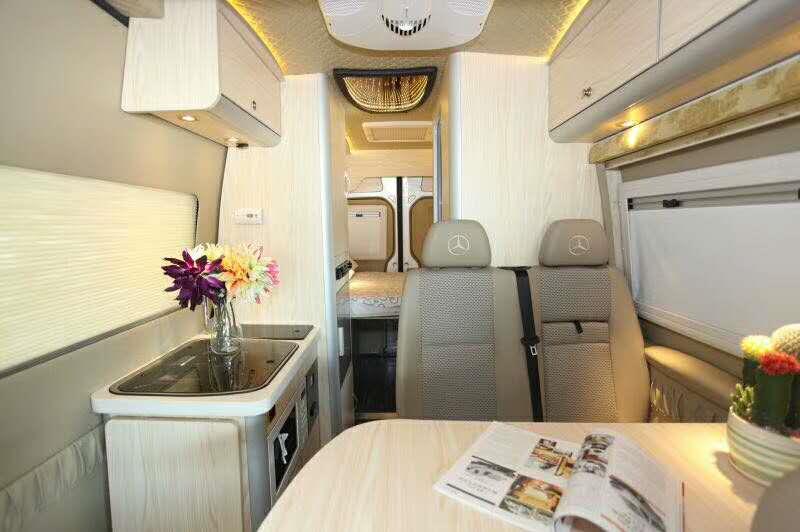 车辆的储物柜和厨房.电冰箱.微波炉(烤箱)和美的全套房车厨房系统.洗.做.切一体式.无烟低噪音抽烟机让你移动的家没有一点异味.固定的电磁炉,可以在让你清晨起来有碗养胃的粥.夏天户外的烧烤。冬天房车里的火锅.走到哪里都有美食相伴.