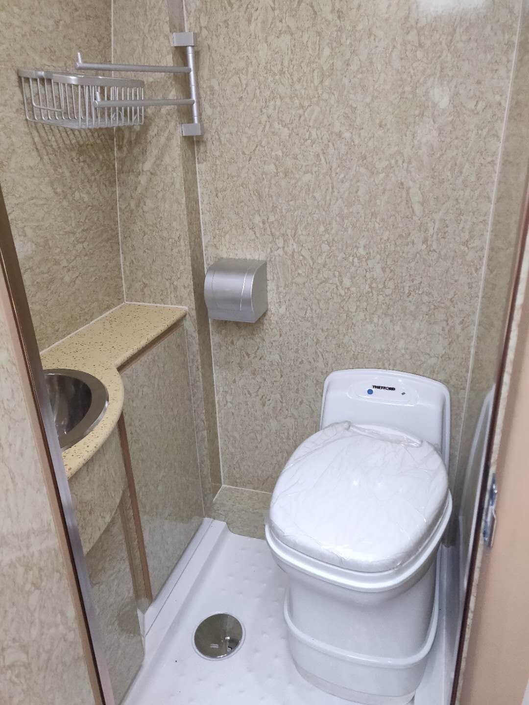 卫生区域马桶,洗漱台,花洒,热水器样样齐全。热水器在车辆行驶过程中可以自行供电,不闭为没有热水澡而烦恼.