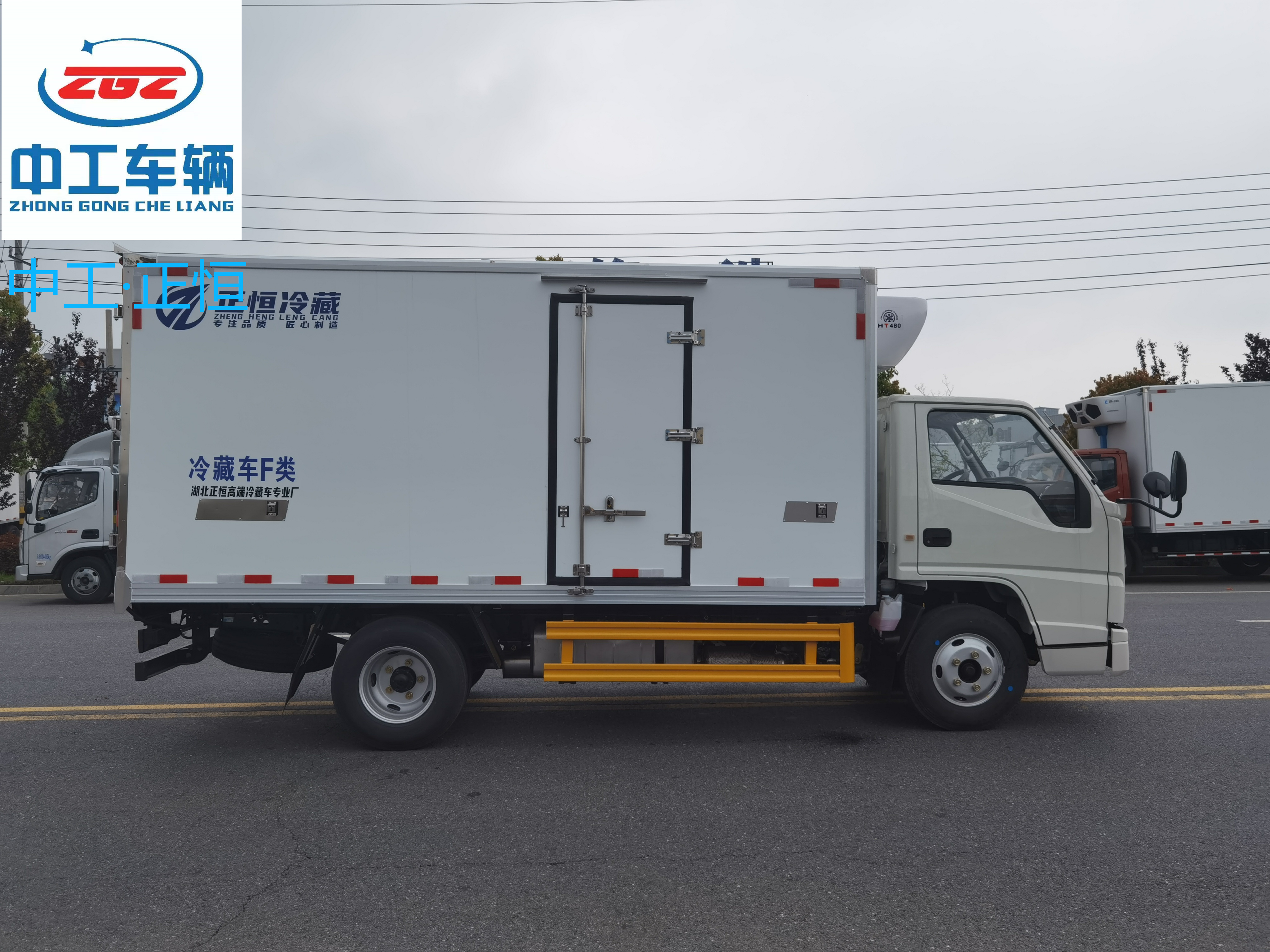 江铃顺达宽体冷藏车,不超重公告型号 : JX5041XLCTG26整车尺寸:5995*1950*2940箱体尺寸:4130*1780*1750 五十铃115马力,轴距:3360mm ,3座,原厂驾驶室空调,动力转向,ABS,中控锁,遥控钥匙,7.00钢丝胎。蓝牌,厢体内外玻璃钢,8cm高密度聚氨酯保温,底板为防滑花纹铝板,后门锁件为不锈钢。制冷机组:-5度(保鲜)或-15度(冷冻)。