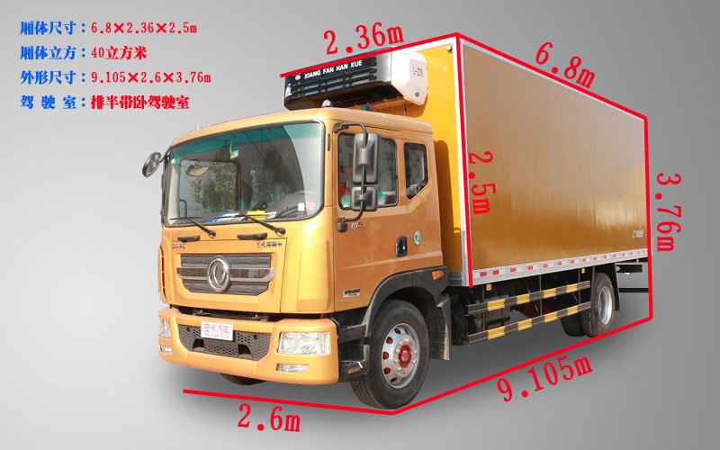 东风多利卡D9-6.8米冷藏车厢体尺寸