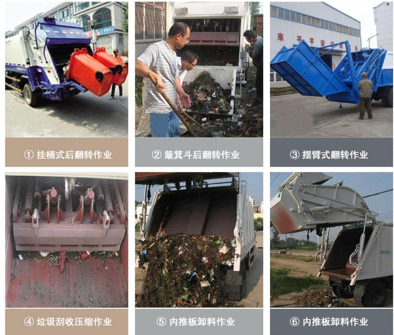 压缩机构由钢板与槽钢焊合的压板,导轮及油缸座等组成,在油缸推动下,将料斗内的垃圾压缩到厢体内。压缩循环时间:25-30s,压缩密度:0.6-0.8t/ m3。卸料机构由卸料油缸与卸料推板组成,卸料推板由钢板和支架焊合而成,由导槽定位,由油缸伸长推动卸料推板而卸出垃圾,推卸垃圾时间:40s。。