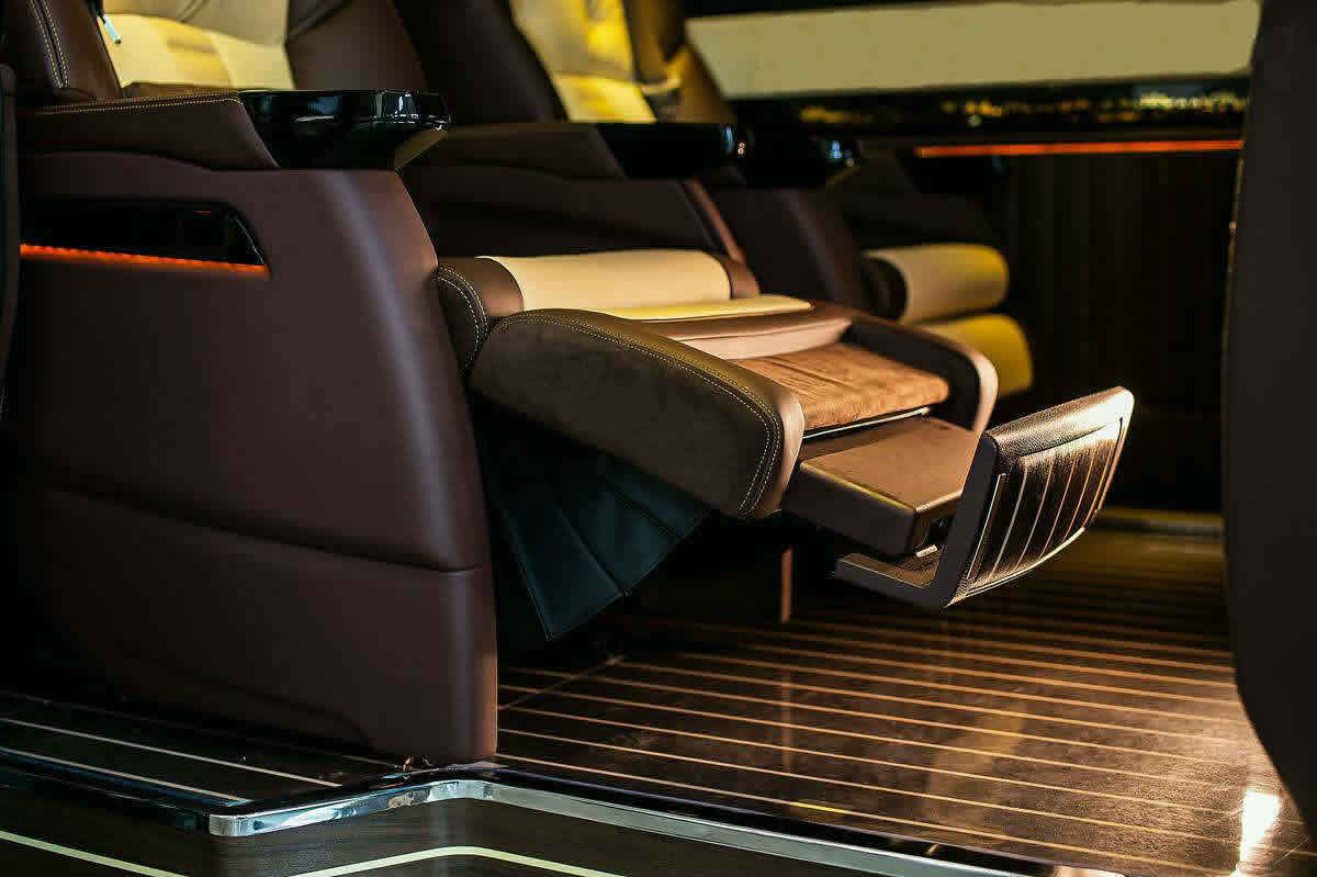豪华真皮电动单人座椅说到坐,那不得不提后舱两张豪华航空座椅,依据亚洲人身体形态定制而来,全部采用进口小牛皮包裹,填充物十分柔软。手枕处更选用了更为珍贵的鸵鸟皮皮质,天然的圆点与细腻的皮质给乘客足够的舒适感。功能上航空座椅配有多向调节、加热通风、舒适腿托、电动电脑桌配套等高等级座舱实用功能。贵宾可以舒服的坐在带脚托、按摩、加热功能的航空座椅上轻松一刻。当需要转换到工作模式时,升起电动桌板、旋转座椅就能瞬间构成一个融洽的商务会谈氛围。此外,后舱空气净化系统是日益拥堵的道路上必备电器,液晶触摸式中央控制系统的交互设计一目了然,能精准的控制车内电器。