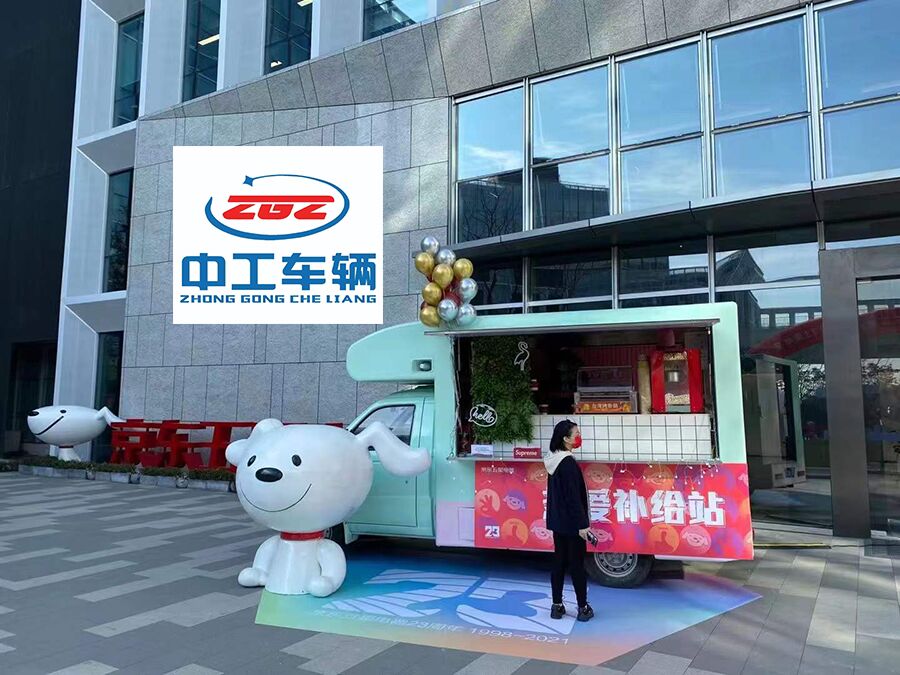 京东五星商城选择了蓝狮在线车辆有限公司打造了暖心补给站、在这个小小的移动服务车中可以带来铁板烧、奶茶、麻辣烫、关东煮。一切只可在小吃街中吃的东西、种类齐全。
