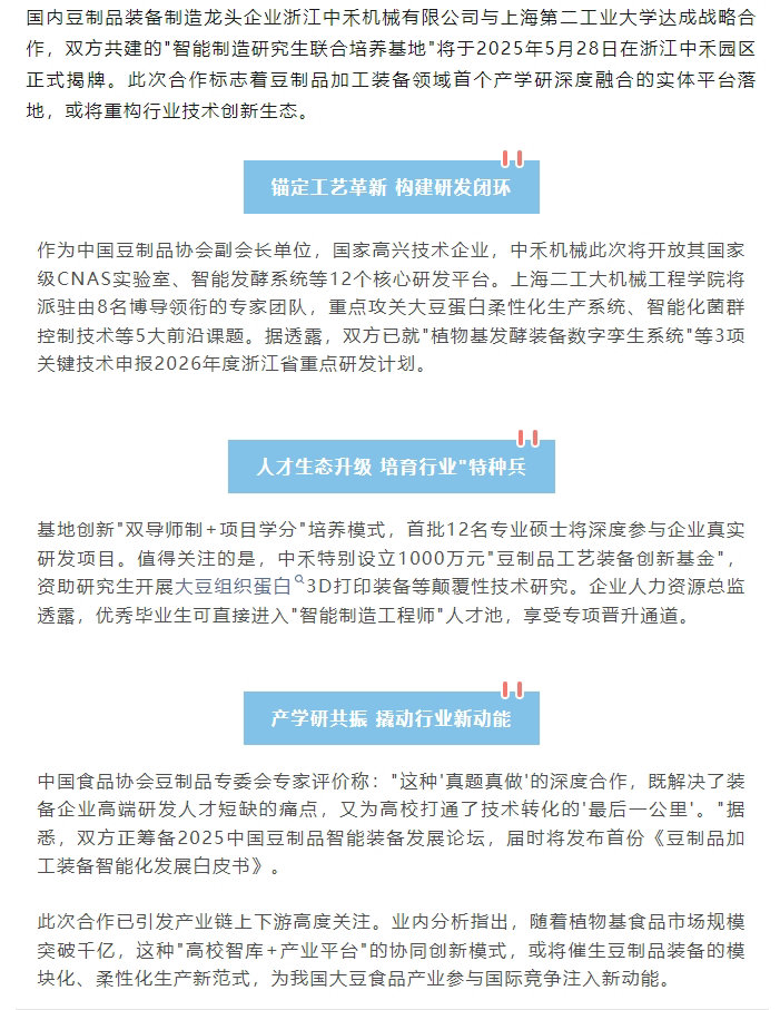 产教融合再添标杆!蓝狮在线机械联袂上海二工大打造豆制品装备研发新高地
